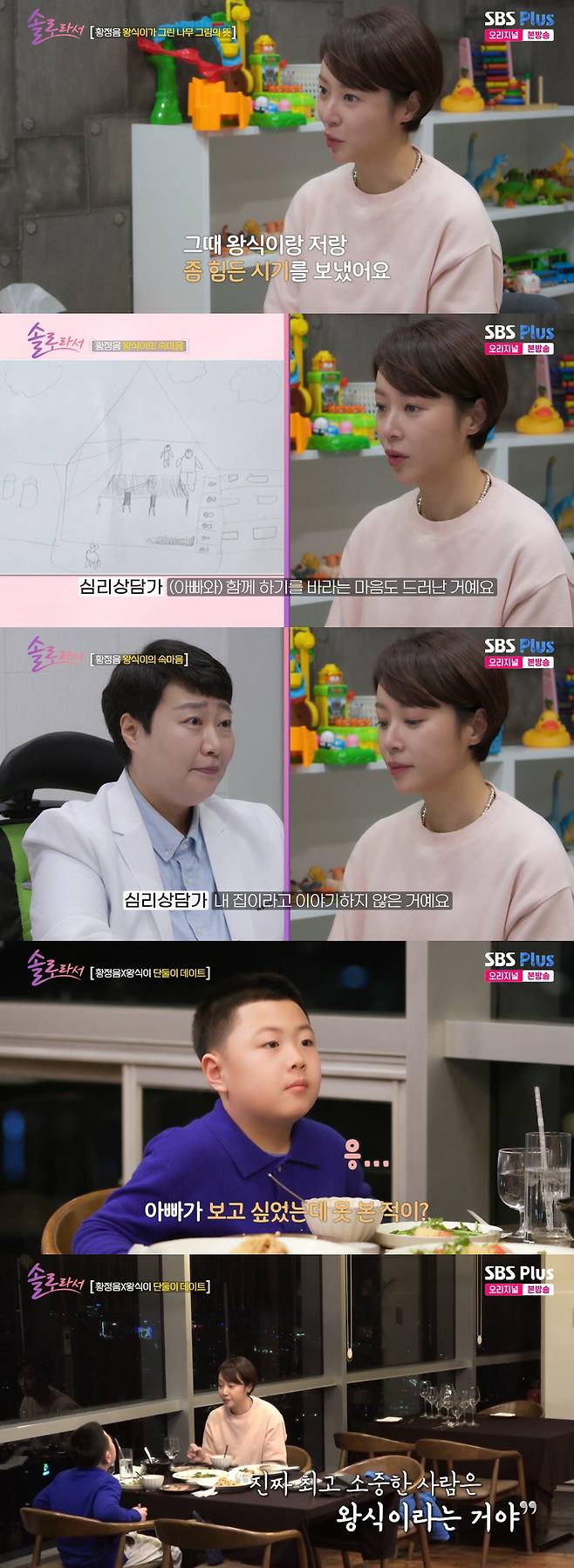 29일 방송된 SBS Plus·E채널 공동 제작 예능 '솔로라서'에서는 황정음이 첫째 왕식이를 데리고 처음으로 아동·청소년 발달센터에서 심리 상담을 받는 모습이 그려졌다.
