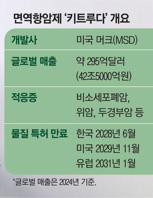 글로벌 매출 1위 의약품 키트루다의 바이오시밀러 개발 경쟁이 시작됐다. 미국 머크(MSD)가 개발한 키트루다는 작년에만 295억달러의 매출을 올린 면역항암제다. 2028년부터 이 블록버스터 제품의 특허가 만료되는데, 한국을 비롯한 주요국 바이오시밀러 기업들이 앞다퉈 도전장을 냈다.