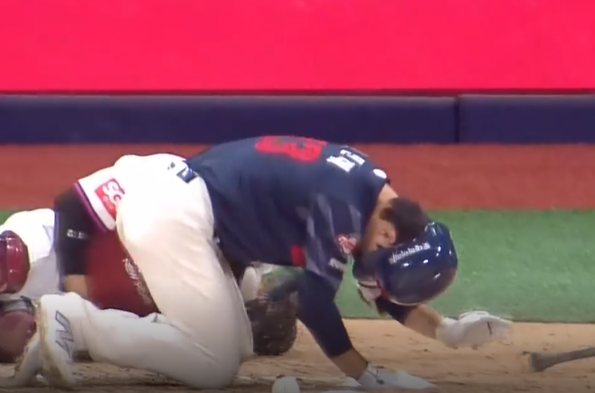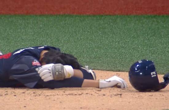 전민재는 곧바로 넘어져 계속 일어나지 못했다. 응급 치료가 이어진 가운데 앰뷸런스가 급하게 그라운드로 들어왔다. 전민재는 눈 부위를 수건으로 감싼 뒤 앰뷸런스에 탑승해 근처에 있는 구로고대병원으로 곧장 이동했다.