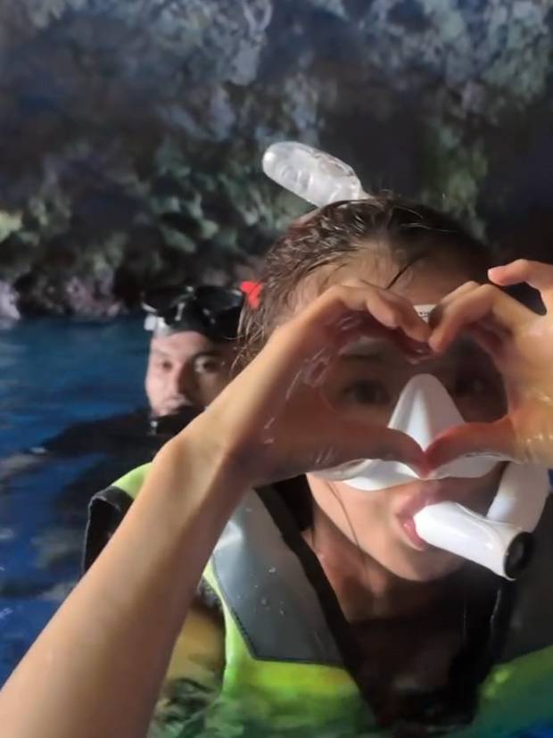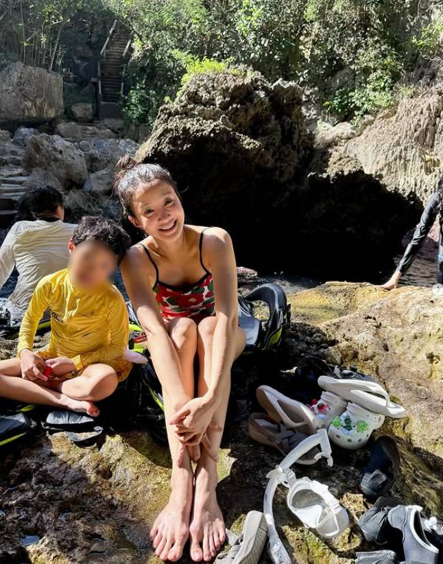 공개된 사진에는 사이판의 대표 명소인 그로토(Grotto)에서 아들과 나란히 앉아 자연을 만끽하는 모습이 담겼다. 두 사람은 바닷가와 천연 동굴이 어우러진 그로토에서 스노클링 등 다양한 액티비티를 즐기며 특별한 추억을 쌓았다.
