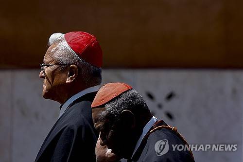 epa12062317 Cardinal Soane Patita Paini Mafi (L) leaves Vatican at the end of sixth meeting of the Congregation of Cardinals, Vatican City, 29 April 2025. The cardinals continue their deliberations during general congregations held following the death of Pope Francis, in preparation for the assembly to elect a new pope, known as the conclave. EPA/FABIO FRUSTACI