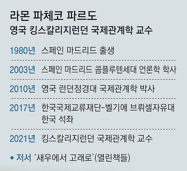스페인 출신인 파르도 교수는 유럽 내 한국 전문가로 손꼽힌다. 벨기에 브뤼셀자유대에서 한국 이슈를 다루는 ‘한국 석좌’도 겸하고 있다. 2022년 영국 옥스퍼드대에서 출간된 저서 ‘새우에서 고래로: 잊혀진 전쟁부터 K-팝까지’는 전쟁으로 폐허가 됐던 한국이 세계적인 문화 강국이 되기까지를 다뤘는데, 지난해 한국어판(열린책들)으로도 출간됐다. 파르도 교수는 “앞으로도 한류는 세계적인 영향력을 꾸준히 유지해 나갈 것”이라고 내다봤다.