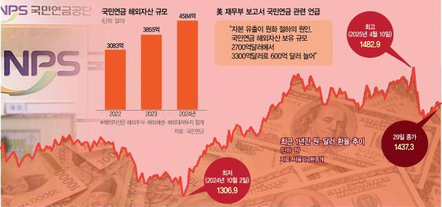 미국 재무부는 2022년 상반기 발표한 환율보고서에서 국민연금의 달러 순매수 문제를 처음으로 언급했다. 국민연금의 해외 투자가 늘어난 것이 원·달러 환율 상승 압력을 키우고 있다는 것이다. 당시 보고서는 외환시장에 적지 않은 충격을 줬다. 미 재무부가 한국은행과 기획재정부 등 외환당국의 시장 개입 뿐만 아니라 국민연금의 해외투자 규모와 외환시장 영향력까지 들여다보고 있다는 점을 드러냈기 때문이다.