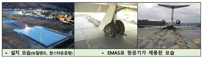 EMAS(Engineered Materials Arrestor System)는 항공기가 활주로를 벗어날 경우 특수 소재가 항공기의 하중에 의해 파괴되면서 항공기를 제동해 사고를 방지하는 시스템이다. 미국에서는 1996년 뉴욕 JFK 국제공항에 처음 설치됐으며 일본 하네다 공항, 대만 쑹산 공항, 뉴질랜드 퀸스타운 공항 등에도 도입됐다.
