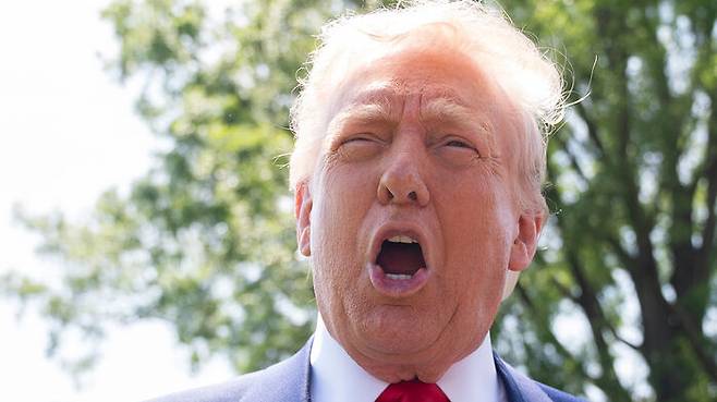▲ 기자들과 대화하는 트럼프 미국 대통령