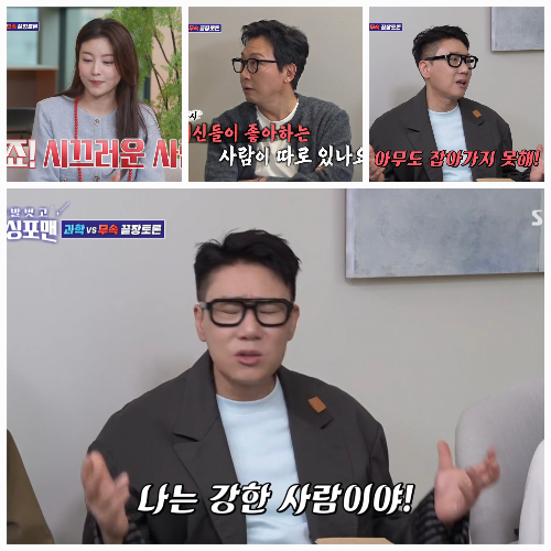 SBS ‘신발 벗고 돌싱포맨’에서 이상민이 MZ 무당 함수현과의 대화 도중 귀신에게 허세를 부리다 뜻밖의 ‘사과’를 전하는 웃픈 해프닝이 벌어졌다.