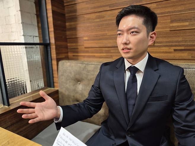 | ▲ 28일 서울 여의도의 한 카페에서 인터뷰에 응한 김상지 사단법인 기본사회 청년위원장(1997년생) |