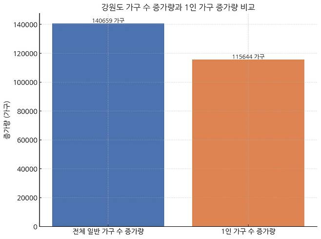 | ▲ 강원도의 가구 수 증가량과 1인 가구 수 증가량 비교 그래프다 |