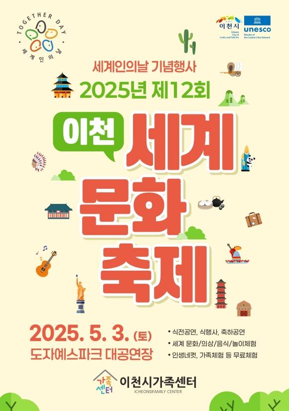 경기 이천시는 오는 5월 3일(토) 이천도자예술마을(예스파크) 대공연장에서 세계인의 날을 기념하는 '제12회 이천세계문화축제'를 개최한다고 30일 밝혔다.