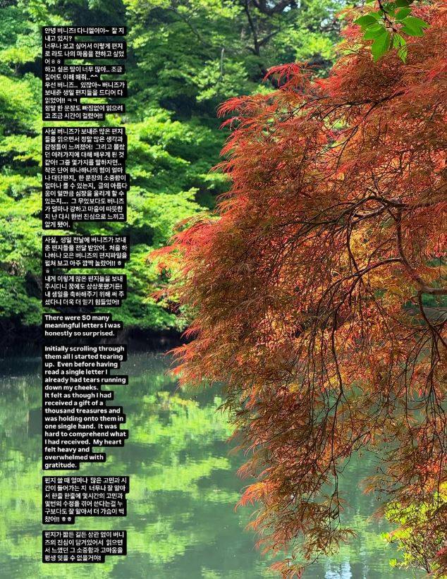 30일 다니엘은 뉴진스 멤버들이 운영하는 SNS 계정에 장문의 글을 게재했다.