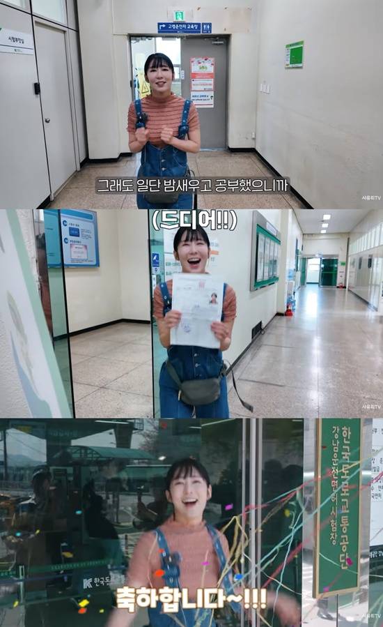 이제는 능숙하게(?) 시험을 접수한 뒤, 사유리는 "합격하면 차 사러 간다. 중고차"라며 자신감을 보였다. 긴장한 모습으로 시험장에 들어갔던 사유리는 이후 "딱 60점, 합격했다"며 기쁨의 춤을 췄다.