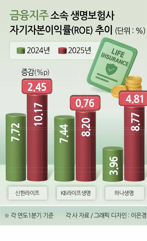 금융지주 소속 생명보험사들이 올해 1분기 수익성 중심의 ‘질적 성장’에 집중한 결과 핵심 수익성 지표인 자기자본이익률(ROE)이 개선된 것으로 나타났다.