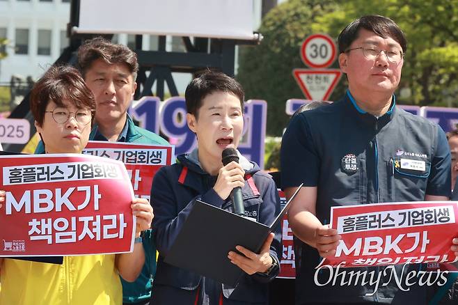 그는 "우리의 피와 땀으로 일군 홈플러스를 자신들의 이익을 위해 난도질하더니, 이제는 더이상 이용 가치가 없다고 판단하고 법원의 손을 빌려 폐기 처분하려 하고 있다. 이는 악질 투기자본의 먹튀 본색을 여실히 드러낸 행태이다"라며 "하지만 우리는 결코 가만히 앉아서 당하지 않을 것이다. 30여 년간 우리의 손으로 키워온 홈플러스, 우리의 삶의 터전을 반드시 지켜낼 것"이라고 했다.