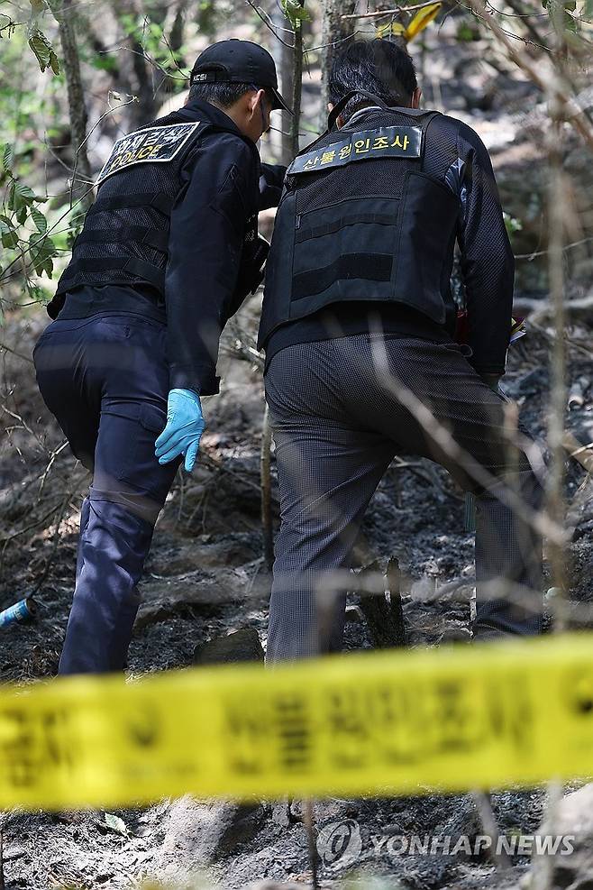 (대구=연합뉴스) 김현태 기자 = 대구에서 발생한 대형 산불이 이틀 만에 진화됐다가 일부에서 재발화한 가운데 30일 대구 북구 노곡동 최초발화지 현장에서 산림청, 경찰, 소방 등 유관기관 관계자들이 현장감식을 하고 있다. 2025.4.30