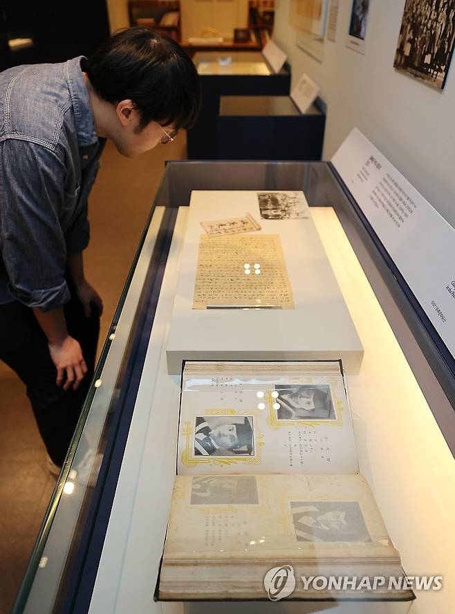(서울=연합뉴스) 이재희 기자 = 30일 서울 종로구 대한민국역사박물관에서 열린 광복 80주년 특별전 '기록, 메모리 오브 유(Memory of you)'에서 관계자가 임시정부 시절 자료를 살펴보고 있다. 이 전시는 5월 1일부터 7월 6일까지 열린다. 2025.4.30