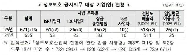 정보보호 공시 기업, 올해 전체 8곳 늘어 총 671곳