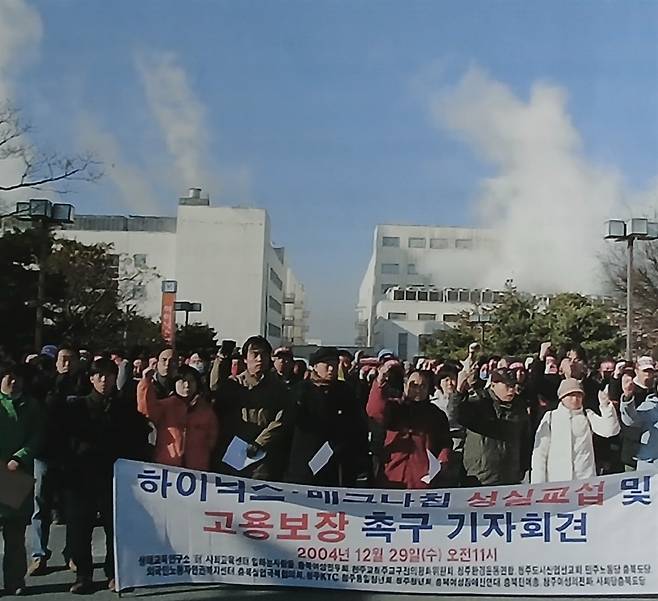 하이닉스와 매그나칩에 비정규직으로 근무하던 노동자들은 2004년 10월 22일 노동조합을 설립했다. 사측은 그해 성탄절 새벽에 직장폐쇄를 하며 12월 31일 240명 노동자를 전원 해고했다. 노동자들의 요구는 노동조합 인정, 단체교섭에 성실히 임할 것, 정규직화였다. 결코 무리하지 않은 노동자들의 요구는 30개월 동안 노동자의 피를 말렸다.