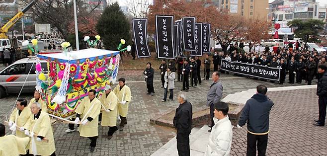 | ▲ 운구 청주시청에서 상당공원으로 운구하는 모습 |