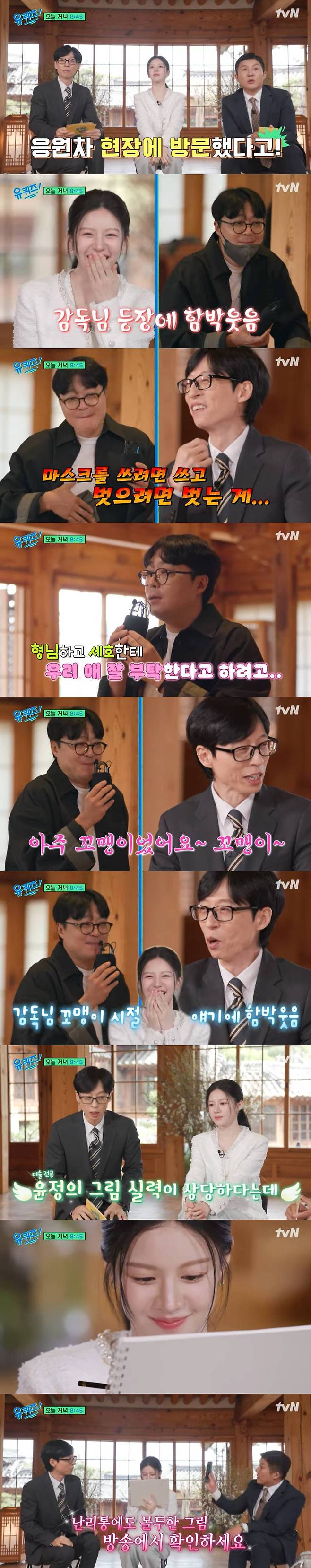 (엑스포츠뉴스 이예진 기자) 배우 고윤정이 데뷔 6년만 첫 예능 '유퀴즈'에 출격하는 가운데, 신원호 감독이 응원차 촬영 현장에 방문해 눈길을 끌었다.