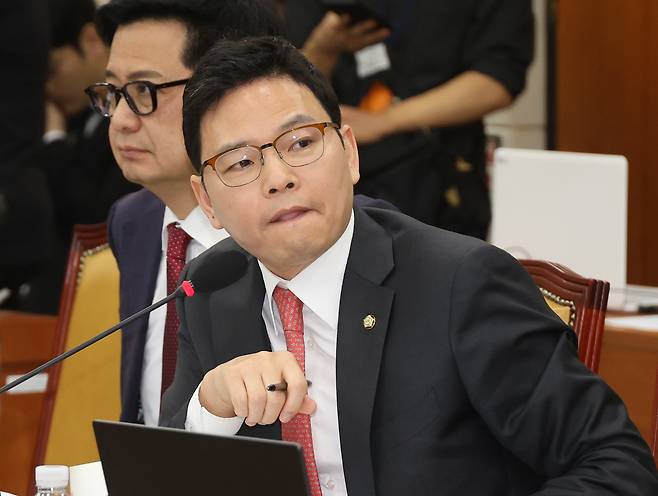 | ▲ 박정훈 국민의힘 의원이 30일 오전 서울 국회에서 열린 과학기술정보방송통신위원회 전체회의에서 최근 SK텔레콤 유심 정보 해킹 사태에 대해 유영상 SK텔레콤 사장에게 질의하고 있다. |