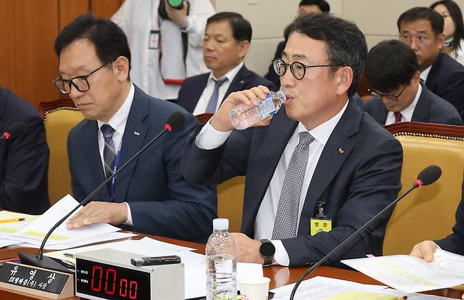 | ▲ 유영상 SK텔레콤 사장이 30일 오전 서울 국회에서 열린 과학기술정보방송통신위원회 전체회의에 참석해 최근 SK텔레콤 유심 정보 해킹 사태에 대한 의원들의 질의에 답변한 뒤 물을 마시고 있다. |