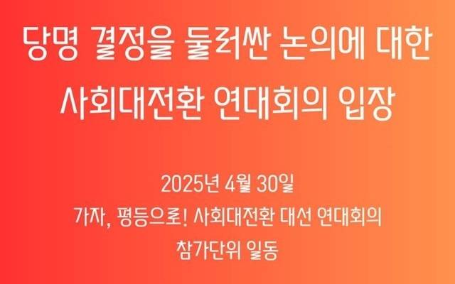 이어 "(연대회의는) 정의당의 당명이 바뀌지 않는다면 공동의 대선 대응은 중단될 수밖에 없음을 합의한 바 있다"라며 "그렇기에 광장의 열망을 담아내거나 새로운 주체를 호명하지 못하고, 과거의 소환하는 듯한 호명이 우려스러운 것은 사실"이라고 민주노동당이라는 당명에 걱정을 내비쳤다.