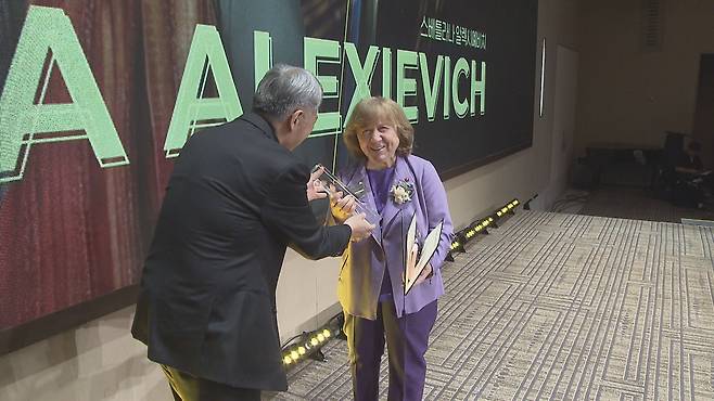 벨라루스 출신의 저널리스트이자 작가 스베틀라나 알렉시예비치가 '제6회 제주4·3평화상'을 수상했습니다.