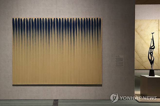 (서울=연합뉴스) 강민지 기자 = 30일 서울 종로구 국립현대미술관 서울관에서 열린 MMCA 서울 상설전 '한국현대미술 하이라이트'에 이우환 '선으로부터'가 전시되고 있다. 전시는 이건희컬렉션 9점을 포함 한국 현대미술 대표작 86점을 소개한다. 2025.4.30