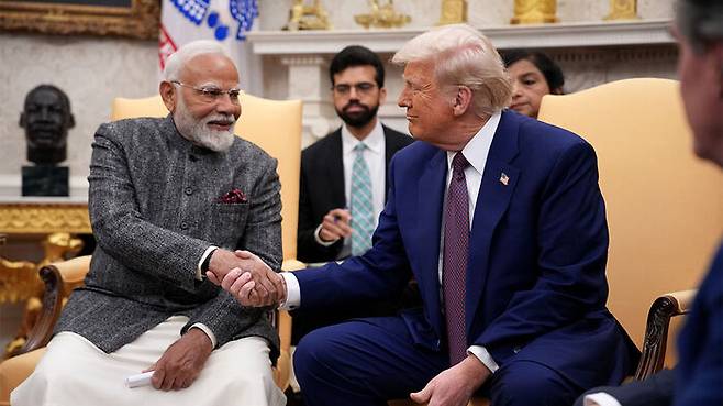 ▲ 지난 2월 13일 미국 백악관에서 도널드 트럼프 미국 대통령(오른쪽)과 나렌드라 모디 인도 총리가 정상회담을 하고 있다.