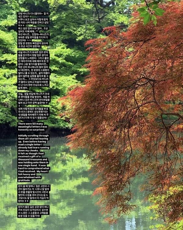 “눈물 흘리며 읽었어요”…다니엘, 버니즈에게 보내는 진심 한 통