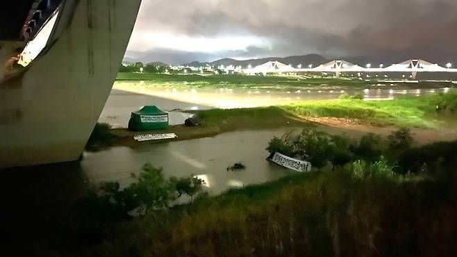 | ▲ 작년 5월 6일, 큰 비에 잠길 뻔했던 천막농성장 모습 |