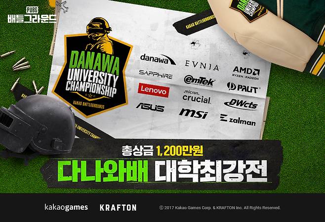 카카오게임즈는 국내 서비스 중인 '배틀그라운드'의 대학생 대상 e스포츠 대회 '다나와배 대학최강전'을 개최한다고 밝혔다.