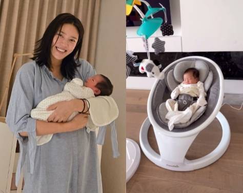 해당 기계는 자동으로 의자를 흔들거리며 손담비의 딸이 잠드는 것을 돕고 있어 놀라움을 자아낸다.