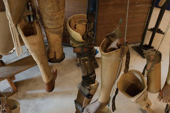 | ▲ 불발탄 피해자들이 직접 제작해 사용했던 의족 . |