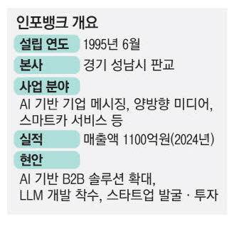기업 간 거래(B2B) 커뮤니케이션, B2B 인공지능 솔루션을 개발하는 인포뱅크는 기업 메시징 서비스가 주력이다. 회사 구조가 독립 사업부의 연합체로 구성된 게 독특하다.