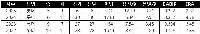 | ▲ 롯데 박세웅의 주요 투구기록 (출처: 야구기록실 kbreport) |