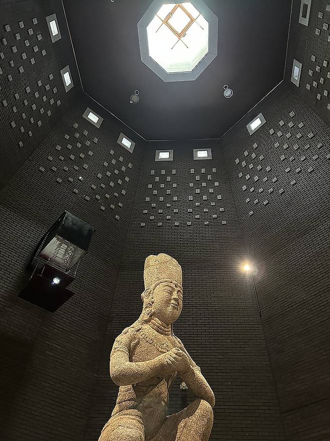 (평창=연합뉴스) 김예나 기자 = 30일 강원 평창 월정사성보박물관에서 전시 중인 국보 '평창 월정사 석조보살좌상' 모습. 2025.4.30