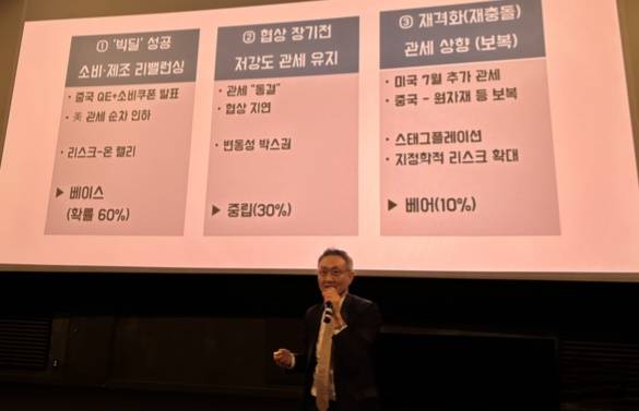 세미나 현장에서도 이 같은 분위기가 감지됐다. 강 대표는 "최근 시장은 빅딜 기대 쪽으로 힘이 넘어간 것 같다. 종가에 강세가 이어진 것은 시장이 빅딜 가능성을 반영한 결과"라며 "베선트 재무장관이 교체되지 않는 한 시장은 빅딜 기대를 유지할 것"이라고 설명했다. 반대로, 강경파 인사가 다시 전면에 나설 경우 관세전쟁이 재점화될 수 있다는 우려도 함께 제기됐다.