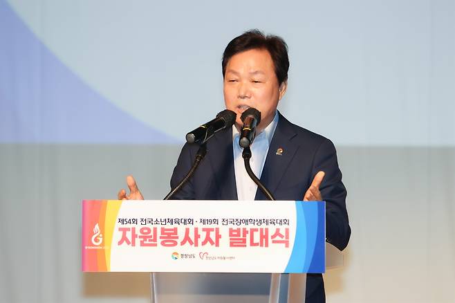| ▲ 30일 경남도청 대강당에서 열린 전국소년체전?전국장애학생체전 자원봉사자 발대식. 박완수 도지사. |
