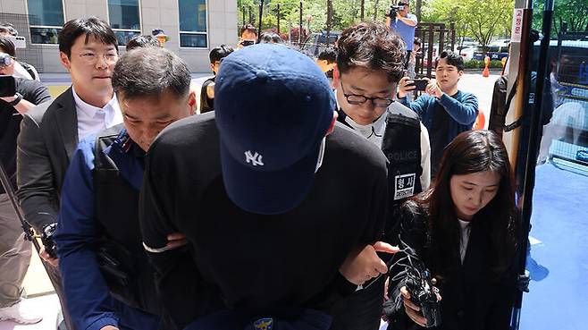 ▲ 청주의 한 고등학교에서 흉기 난동을 벌여 교사와 주민 등 6명을 다치게 한 학생이 30일 오후 영장실질심사에 출석하기 위해 청주지법에 들어가고 있는 모습