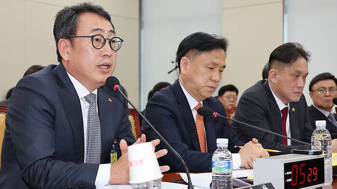 ▲ 유영상 SK텔레콤 대표이사가 30일 국회 과학기술정보방송통신위원회의에서 열린 방송통신 분야 청문회에서 유심 해킹 사태와 관련한 질의에 답하고 있다.