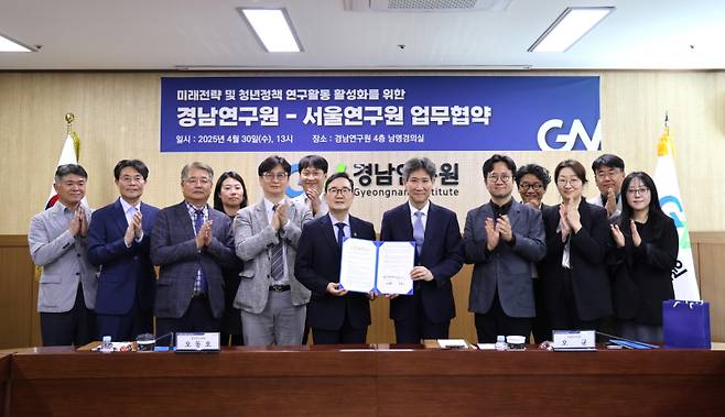 경남연구원(원장 오동호)과 서울연구원이 30일 경남연구원에서 미래전략 및 청년정책 연구협력 강화를 위한 업무협약(MOU)을 체결했다.