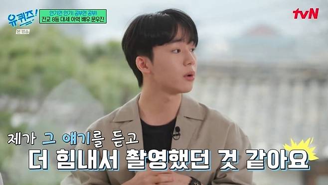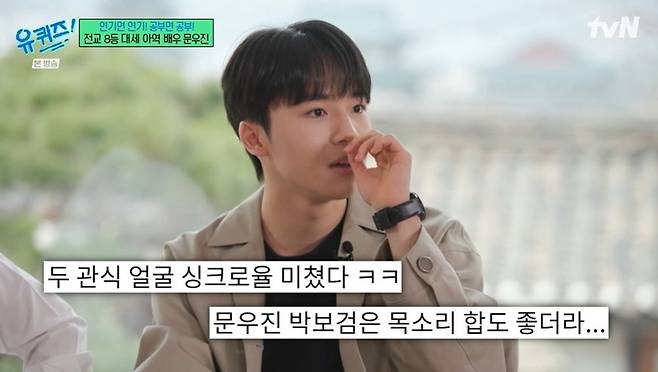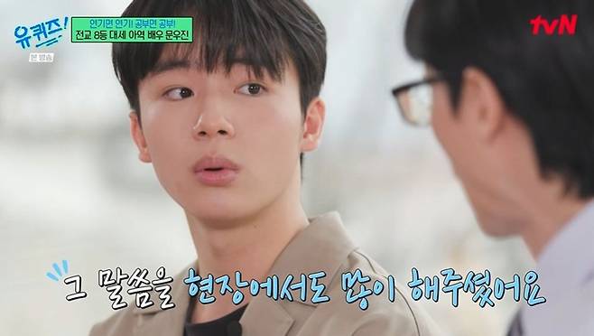 첫 예능 출연인 문우진은 '유퀴즈' 섭외 연락받은 소감에 대해 "우상으로 생각하는 선배님들이시고, 제가 진짜 애청자"라며 팬심을 드러냈다. 또한 문우진은 "'런닝맨'도 광팬이다. 타 방송 얘기해도 되냐. '런닝맨' 다시 보기 정말 좋아한다"라고 밝혔다. 유재석이 "(조세호는) '1박 2일'이다"라고 하자 문우진은 당황하며 "게스트로 나오신 거 너무 재미있었다"라고 말하기도. 문우진은 "'유퀴즈' 나온다고 친구들한테 얘기했더니, 뒤로 자빠지면서 놀라더라"라고 덧붙였다.
