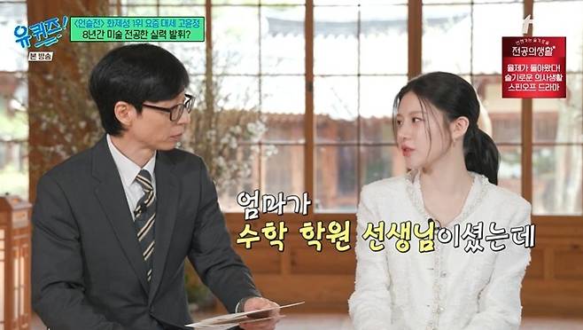 고윤정은 학창 시절을 떠올리며 "그림 잘 그리는 조용한 친구였다. 수학을 싫어했다. 루트 이후로 어려워서 싫었다"라고 솔직하게 고백했다. 이어 고윤정은 "어머니가 수학 학원 선생님이셨다. 엄마는 잘 가르치셨겠죠. 근데 혼자는 말을 안 들으니 친구를 데려와서 공부를 시키셨다. 근데 친구만 성적이 오르고, 전 그대로였다"며 머쓱해했다.