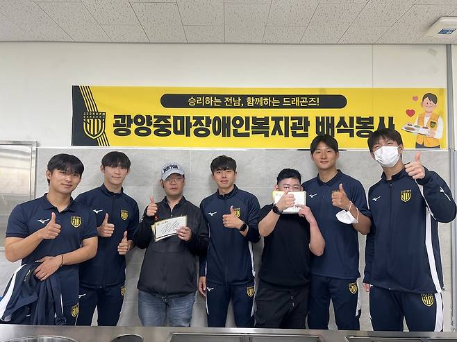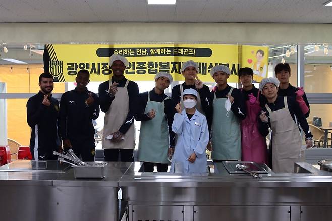 이번 행사는 전남이 지역사회로부터 받은 관심과 성원에 보답하고자 마련됐다. 광양중마장애인복지관, 광양장애인종합복지관, 광양노인복지관 등 3개 복지시설에는 따뜻한 점심 배식봉사가, 광영초에서는 학생 대상으로 한 축구 클리닉이 이뤄졌다.