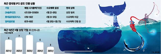 시장의 관심은 남은 중대형 공모 흥행 여부에 쏠리고 있다. 현재 롯데글로벌로지스와 달바글로벌이 유가증권시장 상장을 목표로 수요예측 등 관련 절차를 진행하고 있다.