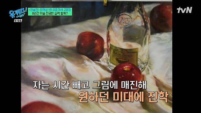 자는 시간 빼고 그림에 매진해 원하던 미대에 진학한 고윤정은 "미술 잘한다고 해서 미대에 왔는데 저만큼 잘 그리는 사람은 너무 많고, 거기서 벽을 느꼈던 것 같다"고 했다.