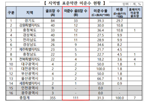 강원지역 표준약관 미준수 골프장 전국서 두번째 많아