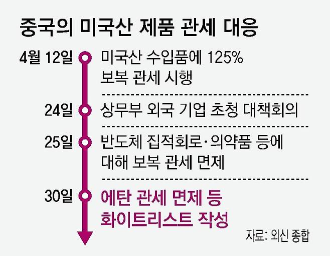 관세 면제 품목은 계속 늘어날 전망이다. 중국은 도널드 트럼프 미국 대통령 집권 1기 때부터 미국으로부터 통상 압박을 받아왔고, 주요 품목에 대한 자국 내 생산 역량을 키워 왔다. 하지만 반도체, 항공기, 의약품 등 여전히 미국 의존도가 높은 분야도 많기 때문이다. 통상전쟁이 장기화될 경우 중국 기업들의 부담 역시 커질 수밖에 없다. 에탄의 경우도 중국 기업들이 당국에 관세 면제 필요성을 설명한 것으로 알려졌다.