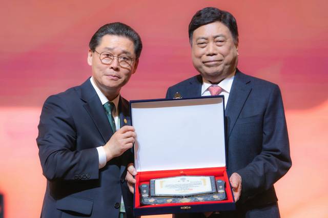 기독교한국침례회(총회장 이욥 목사)는 지난 28일 강원도 원주 오크밸리에서 열린 ‘침례교 목회자 부부 영적성장대회’에서 김성로(오른쪽) 춘천한마음교회 목사를 명예총회장으로 추대했다.